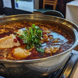 Excellent and food coma inducing dinner! Came here on a Saturday night with 2 others for dinner, enjoyed a TON of amazing food, and struggled to stay awake the rest of the night. It's a small interior so the wait could be short or long based on how many people are almost done eat vs willingness to stay and wait for a table. They told us 20 min and we were seated around 15-20 min. The food: - Cucumber in spicy garlic sauce: nice and refreshing. I'd honestly recommend getting these mid-meal. Perfect as palate cleansers between dishes - Chongqing Style Spicy Chicken: basically spicy popcorn chicken. Nothing to write home about, but you can bet they were enjoyable to eat! A good crowd pleaser. Would also recommend dipping the chicken into the sauce of other dishes to try new delicious combinations. - Dan Dan Noodles: the noodles were cooked well and the sauce and pork were tasty. Wish the noodles themselves had a bit more flavor, but it you eat them alongside drinking some broth, it's great. They were also super nice about bringing 3 smaller bowls and splitting the dish among us. - Eggplant with pork in garlic sauce: this was honestly my favorite dish. The eggplant was perfectly cooked and the sauce had SO MUCH flavor. I'd say this is a must-get - Spicy Fish & Beer and Chinese Herb Spice: this was actually 2 dishes, the fish and the beef dishes. When my friend asked which they preferred, the waiter mentioned that we could get both combined. I'm glad we listened to them. My preference was the beef, but both were so good- flavorful, spicy, and tender. This is definitely a must-try dish. And the sauce worked very well with the fried chicken! - Salt & Pepper calamari: not the calamari you're used to, but super good nonetheless. The calamari was nice and tender while the breading had a great crunch. Topped with salt, pepper, and garlic! Enjoyed eating by itself, but also dipping into other sauces! Portions here are fairly big so come with an appetite. And I'd highly recommend going with a few people (not too big of a group given restaurant size) so you can try more items family style. We got 1 appetizers and 5 entrees (maybe 6 since the fish and meat were combined) and left with a decent amount of leftovers (which they packed for us) and incredibly full. Will definitely return. Might also order them via delivery if I can!