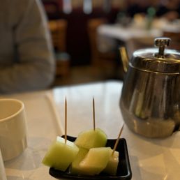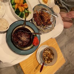 Best spicy fish stew (chefs special) I have ever had. Wood war mushrooms were so succulent and the broth was so good I was drinking it. The tea smoked duck was good but a lot of bones. Pumpkin sesame mochi cake was a nice slightly sweet treat at the end. Pan fried dumplings dumplings and Ma po tofu were good but not amazing. Good quick service, classic Chinese restaurant setting, bathroom was in the back through the kitchen. The prime minister of Singapore has eaten there! Definitely coming back for that fish stew